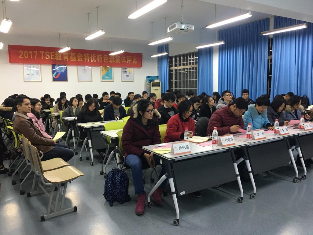 12月19日,黄色网址 2017年“TSE”教育基金特优特色班集体评比在我院B201会议室隆重召开。我院副院长姜锐,党总支副书记李密,教学科叶熹僖以及学生科孙双、郑妤、徐沁怡等老师担任本次评比大会的教师评委,各年级委员会全体成员、团委学生会主席团、各班级代表担任学生评委。