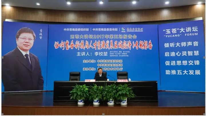 仪式结束后,校长李校堃还为苍南县委理论学习中心组学习扩大会暨玉苍大讲坛作“如何整合科技与人才资源发展区域经济”的专题报告。