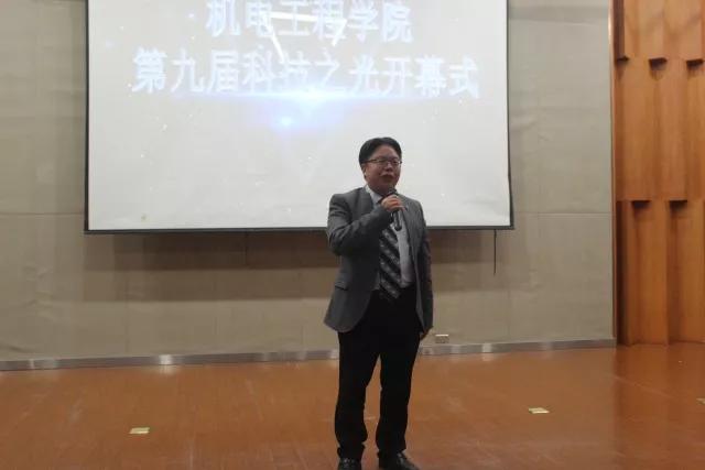 在主持人介绍来场嘉宾后,周院长上台发表致辞,在周院长的讲话中,我们了解了我院在各项竞赛中斩获的佳绩。同时周院长还介绍了关于我院学风建设年的重要活动—科技之光活动月的相关事宜,以及往届科技之光取得的优秀成果。在最后周院长还给予我们殷切的期望并预祝此次科技之光圆满成功。