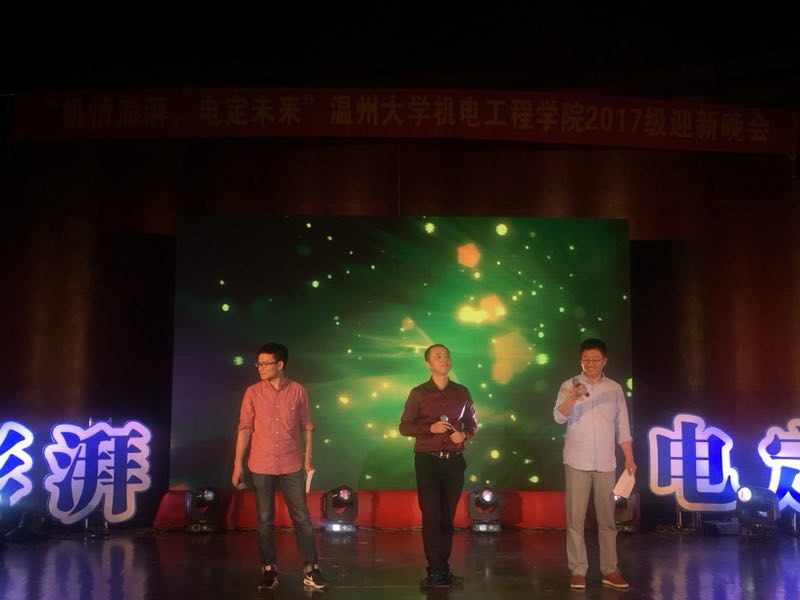 2017年10月18日下午6:40,“机情澎湃,电定未来”2017黄色网址 迎新晚会于南校区音乐厅隆重举行!出席本次迎新晚会的有院长周宏明、党总支书记周荣、党总支副书记李密、辅导员孙双、徐沁怡以及各位新生班主任。