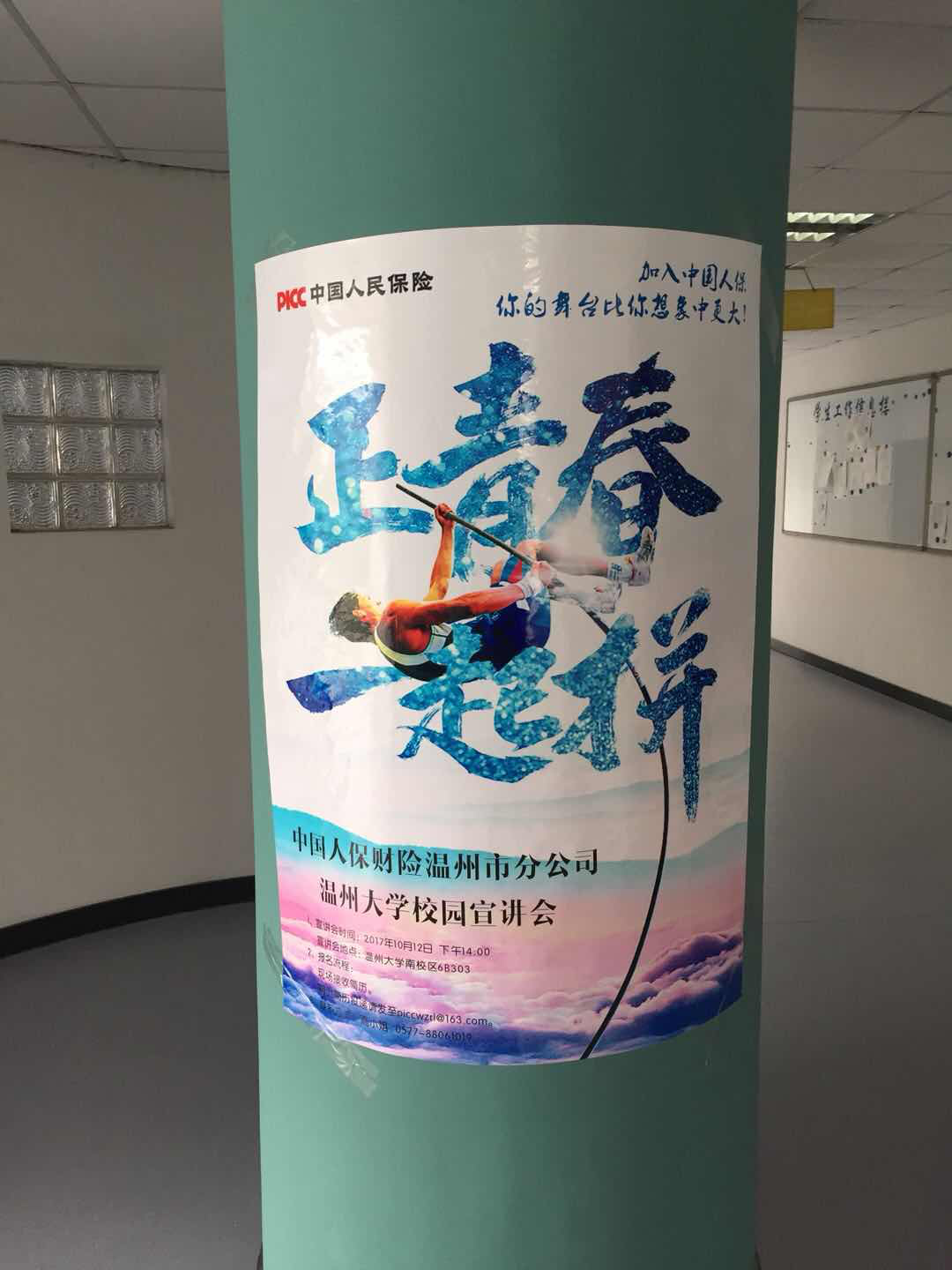 在经过一番沟通交流之后,来自中国人保财险温州市分公司人力资源部的高玉琼女士,真正开始了以“正青春·一起拼”为主题的介绍。先后介绍了当前保险行业市场,以及其所在的世界500强企业中国人保财险公司。从公司体制、优势、文化等到员工培养路线,员工薪酬待遇、员工升职空间等,详细进行了介绍。
