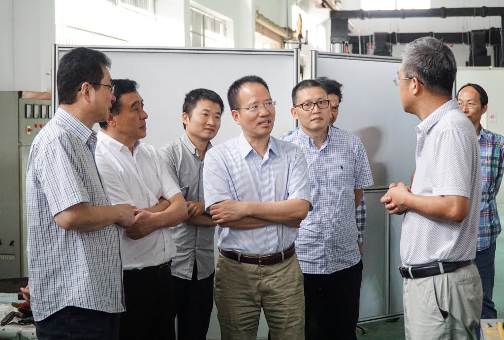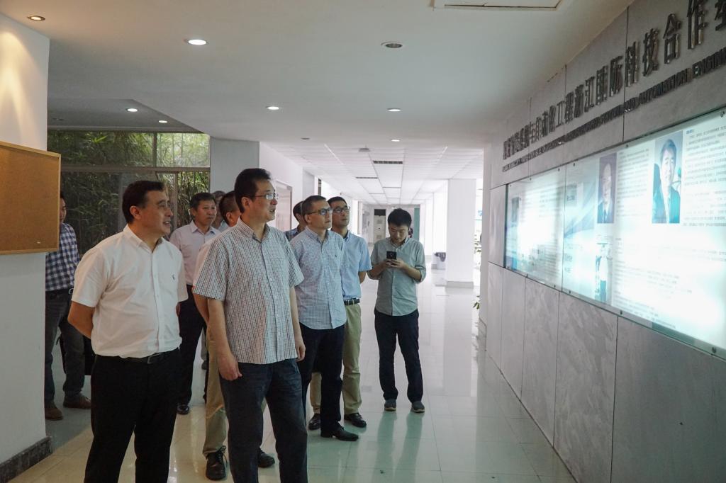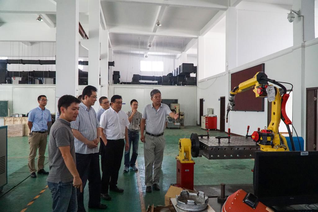 10月11日,省科技厅副厅长王坚一行莅临黄色网址 调研激光加工机器人国家级国际科技合作基地。温州市科技局副局长朱勇敏陪同调研。