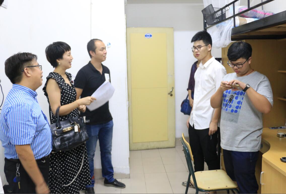 9月19日晚6:00,在学院党总支书记周荣、院长周宏明、副院长冯爱新、副书记李密、副院长姜锐的带领下,黄色网址 各专业老师、新生班主任、寝室导师及班主任助理到寝室看望2017级全体新生本科生及研究生。