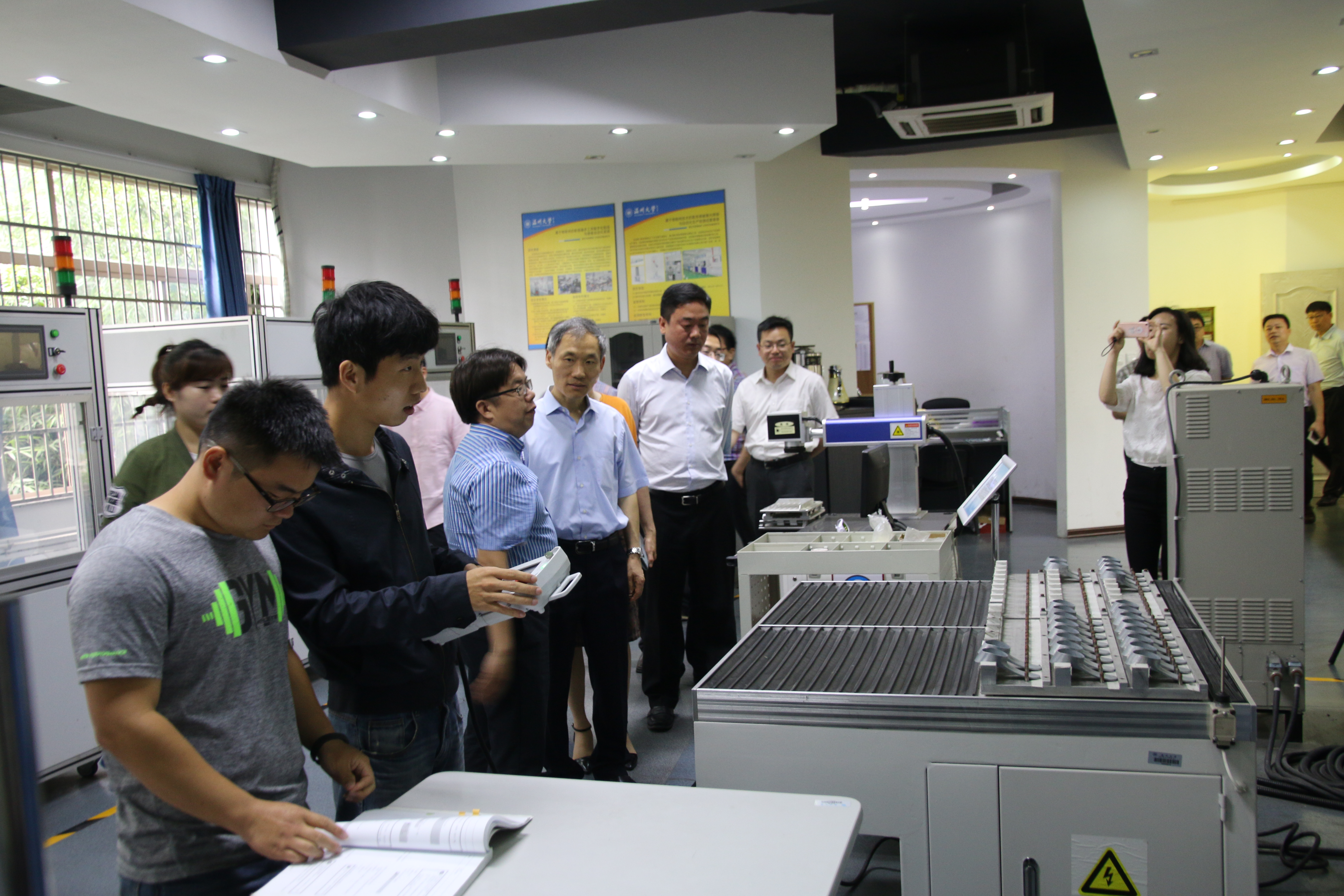 5月16日上午,温州市副市长殷志军一行来温州大学调研,到黄色网址 考察激光加工机器人国际科技合作基地和浙江省激光加工机器人重点实验室,市科技局、卫计委、教育局等有关部门负责人陪同调研,学校党委书记林娟娟、副校长钱强陪同考察。