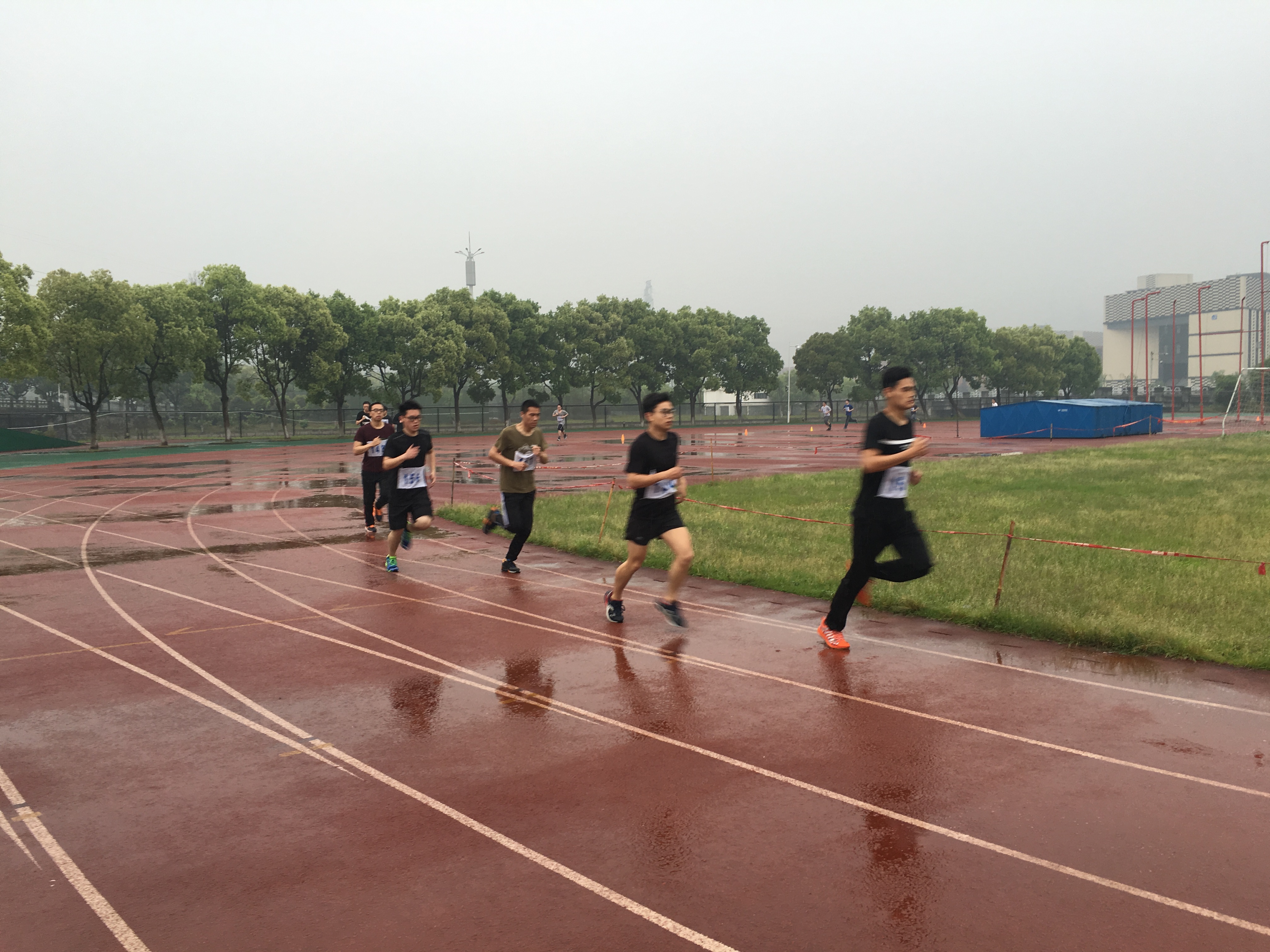 4月25日当天,天公依然不作美,从早上开始就下起了雨,但是同学们的激情丝毫不受影响。8点钟时同学们就集合完毕等待测试,经过一个上午顺利的完成了50米、坐位体前屈、立定跳远、引体向上的测试。下午的1000米长跑测试,瓢泼的大雨也不能挡住同学们前进的步伐,即使已经被大雨淋透已精疲力尽同学们也都拼尽全力坚持到底。