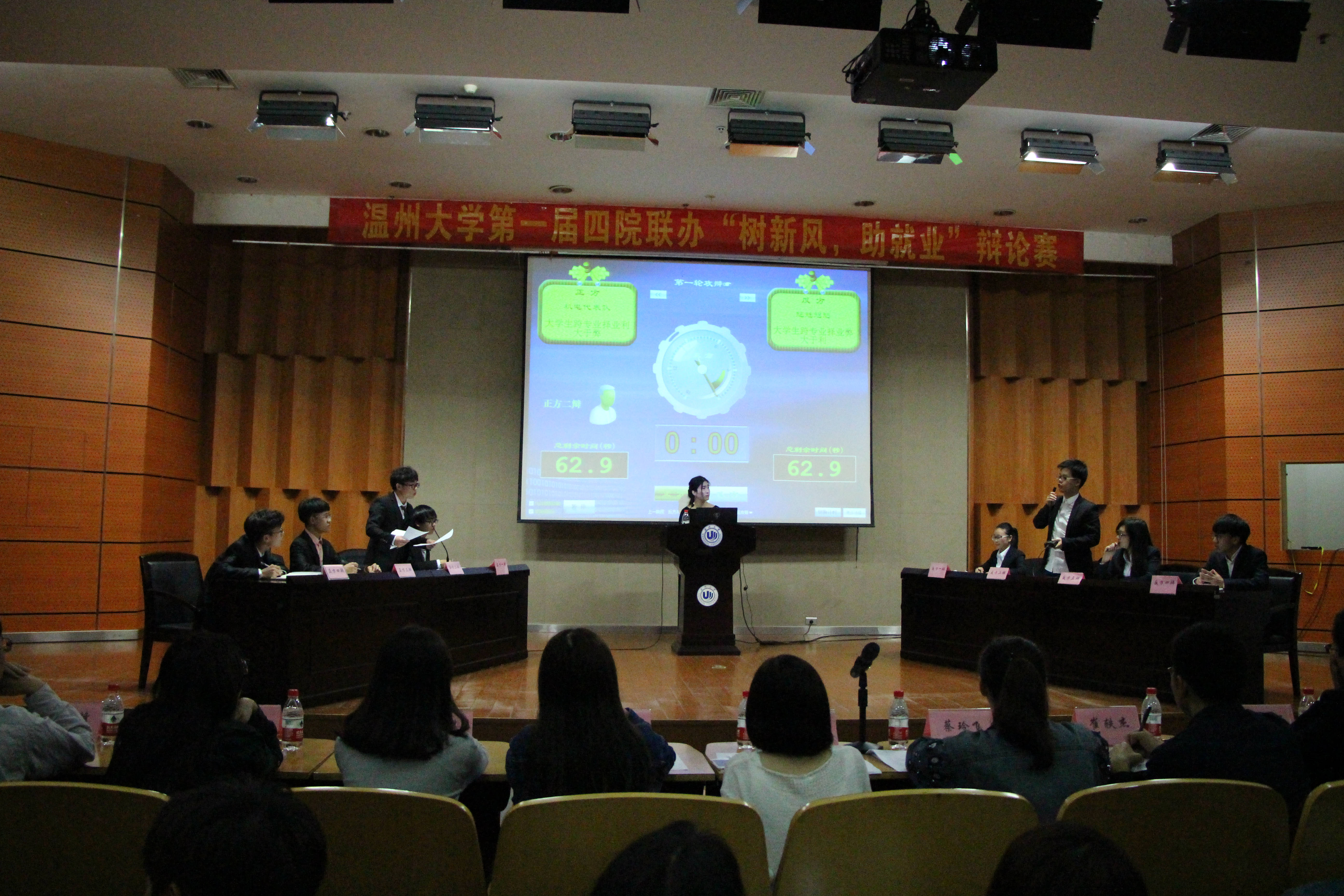 为了活跃学院之间文化氛围,发掘和培养各学院辩论人才,增进各年级同学与各学院之间的相互联系与交流,激发同学们对辩论的兴趣。营造浓厚的学院辩论氛围,推动学风建设工作的更好开展。经黄色网址 ,温州大学化学与材料工程学院,温州大学数学与信息科学学院,温州大学建筑工程学院四个学院联合决定于2017年4月15日星期六晚上18:30,在南校雁山厅举办“2017年第一届四院联办辩论赛”。本次比赛邀请的评委有温州大学瓯江学院法学辩论队的张兰欧,温州大学建筑工程学院的研究生顾志强,温州大学校辩论队的黄色网址 代表崔轶杰,温州大学化学与材料工程学院的辅导员蔡玲飞,温州大学数学与信息科学学院往届的“最佳辩手”周琳辉。并邀请嘉宾建筑工程学院的辅导员潘莉莉,刘明媚,温州大学数学与信息科学学院的副主席夏慧,化学与材料科学学院的副主席徐晓菁,黄色网址 团委副书记叶慧锋来观看。