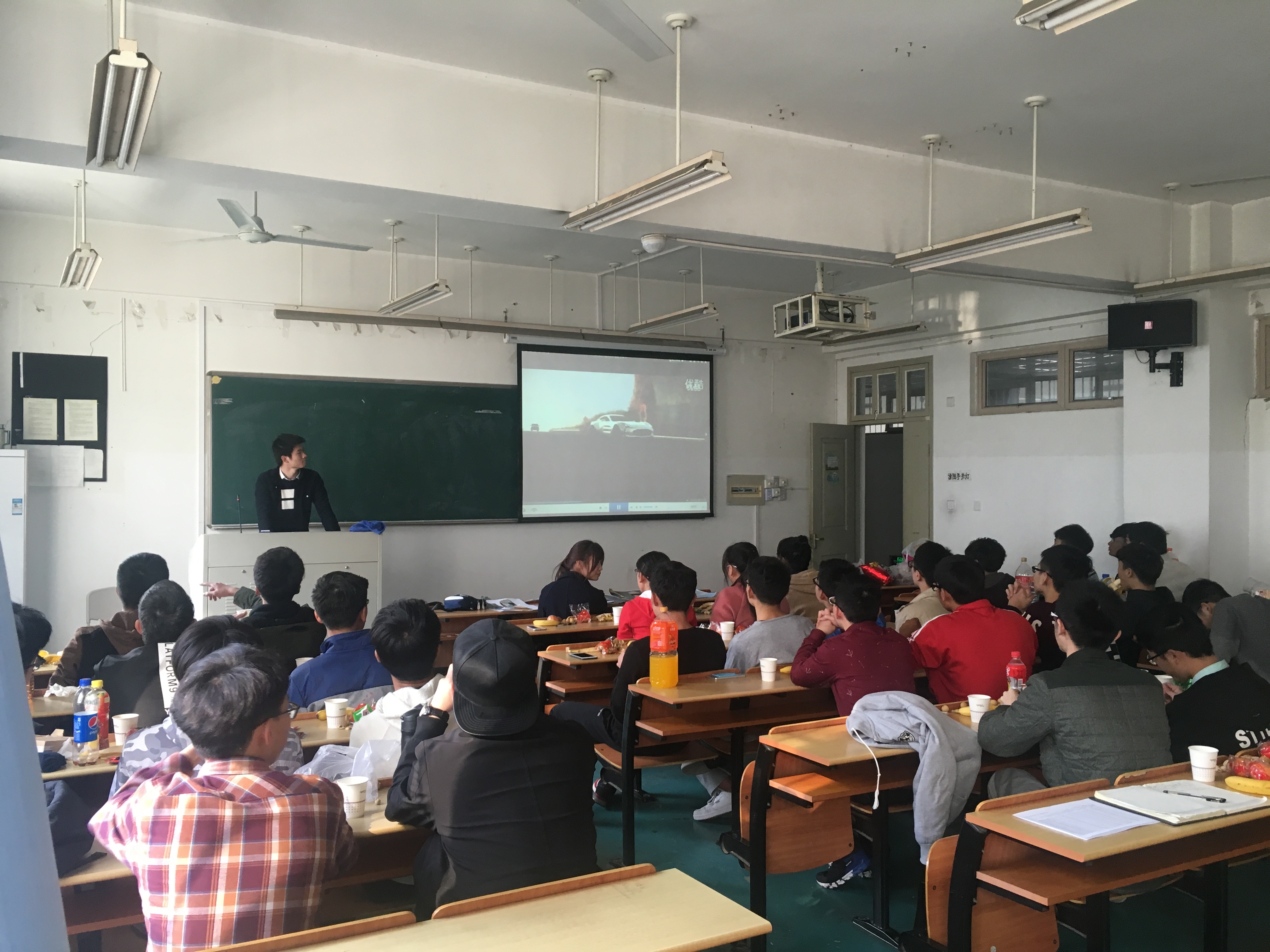 接着,黄智博同学为同学们列出了本专业在接下来的专业选修课的将会遇到的各项课程,并对各个课程的内容、用途进行了简单的介绍。并且他还为同学们介绍了本专业考研的相关内容以及在车辆工程专业名词靠前的研究生院校。
