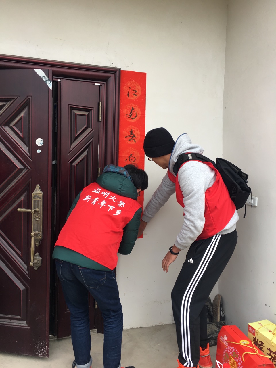 来自机电学院的新青年们在学院老师以及灵昆街道九村村村委宋书记的带领下来到了灵昆街道九村的几户孤寡老人家中,为他们送去了寒冬中的温暖。长久独居的老人见到了新青年们的到来显得无比的高兴,虽然在方言交流上遇到了一点困难但是新青年们用朴实的行动来给老人们送去温暖。大家给老人送上了生活必须的大米、油以及一些营养品,爷爷奶奶们忙着招呼大家坐下,感谢同学们在年关赶来为他们送上温暖。新青年们与老人聊起了生活上的各方面,老人们向大家诉说了生活上的种种不易,但是爷爷奶奶们依然能够乐观的面对,他们说道这也离不开像新青年们这样的来自社会各界、政府对他们的关心。大家都表示关心老人家们是新时代青年们应尽的力所能及的一件事,温暖老人,同时也是对于社会的一种回馈。与此同时,新青年们为老人们送去自己书写的春联,为老人们摘去家中长久未更换的春联,贴上饱含暖意的崭新的春联以及福字。