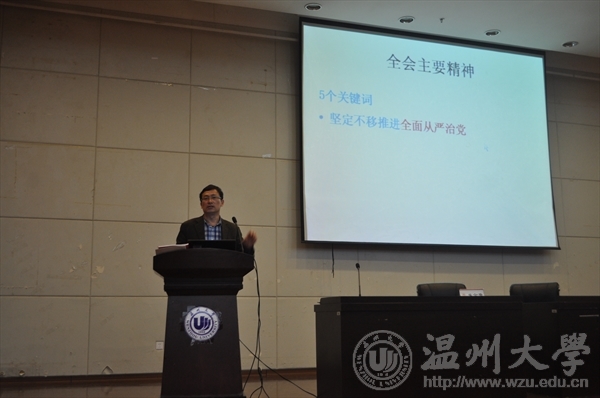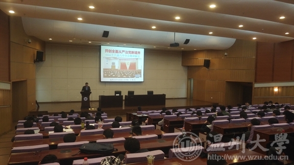 2016年12月20日晚上18:30分,在温州大学育英图书馆举办了由温州大学机电学和院音乐学院一起承办的“开创全面从严治党新境界——十八界六中全会精神解读”的主题政策课讲座。该讲座特地邀请了温州大学马克思主义学院的王柏民教授进行演讲。讲座还没开始,16级机电学院的学生和16级音乐学院的学生都早已迫不及待的在观众席下等待。