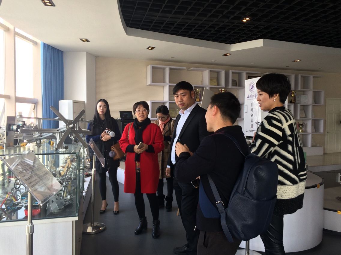 周荣书记、李密副书记等人陪同客人一起参观了我院的智造空间、大学生科技展厅,向来宾们展示了我院学子的科研能力和创造能力。之后,李密副书记陪同张云书记等人参观了温州大学校史馆以及发绣馆。