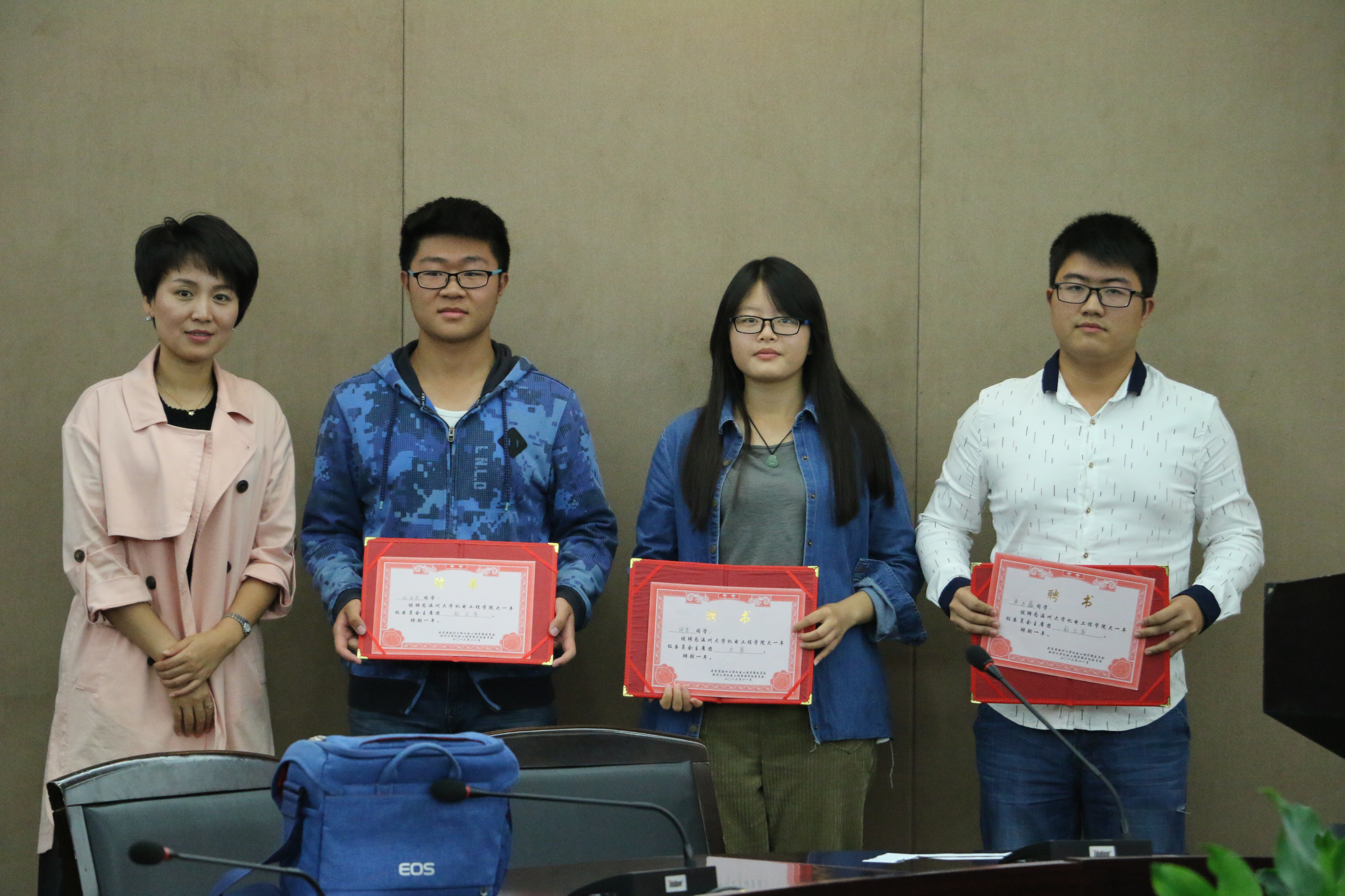 在金臣硕老师宣读《黄色网址 年级委员会工作章程》后,孙双老师公布了各年级委员会主席团换届选举最终投票结果,宣布了各年级新的年级委员会主席团成员名单。接着是李密副书记的致辞,李密副书记表示见证了年级委员会从成立发展到今天的第二届,心情十分激动。与其同时她也对新任的主席团以及年级委员会提出了希望和要求,对各级委员会今后的工作重点和思路提出了方向。李书记认为,各年级要开展具有年级特色的工作,大一需围绕班级凝聚力和学风建设,大二开始注重实用技能的提升,大三培养科技创新能力和科研水平,大四侧重职业素养和就业能力的提升。会议最后,李密书记为新任年级委员会主席团成员颁发了聘书,全体人员合影留念。