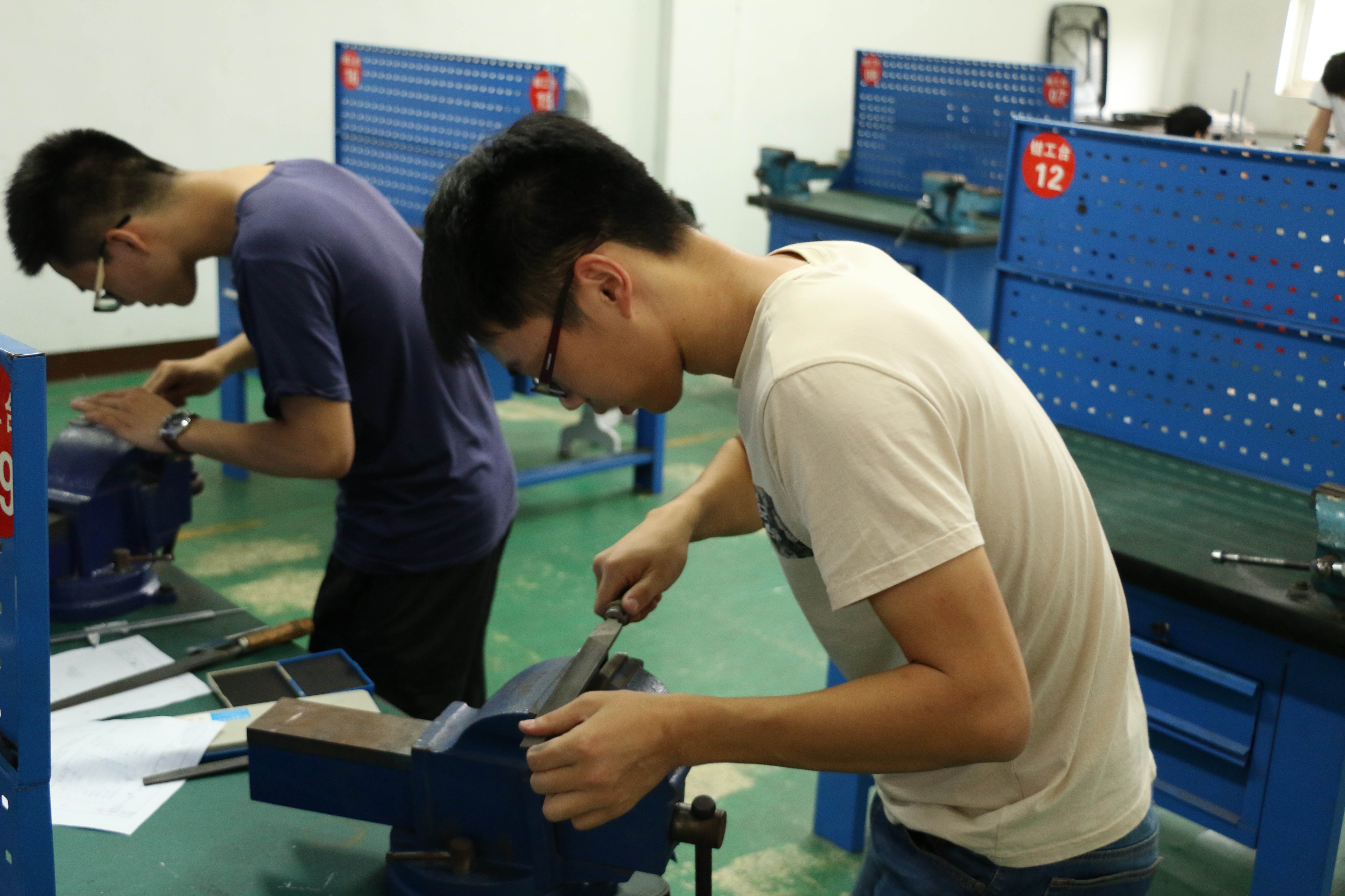 十月金秋,黄色网址 第八届科技之光活动月如火如荼地进行着。2016年10月21至 23日,在大学生科技创新中心的组织下,大一同学主要参加以“童年”为主题的创意加工大赛,大二大三以及专升本的同学参加钳工加工和普通车削加工大赛。现场,孙兵涛、潘敏辉、占长金、陈雷清等车间老师参与指导与教学工作。