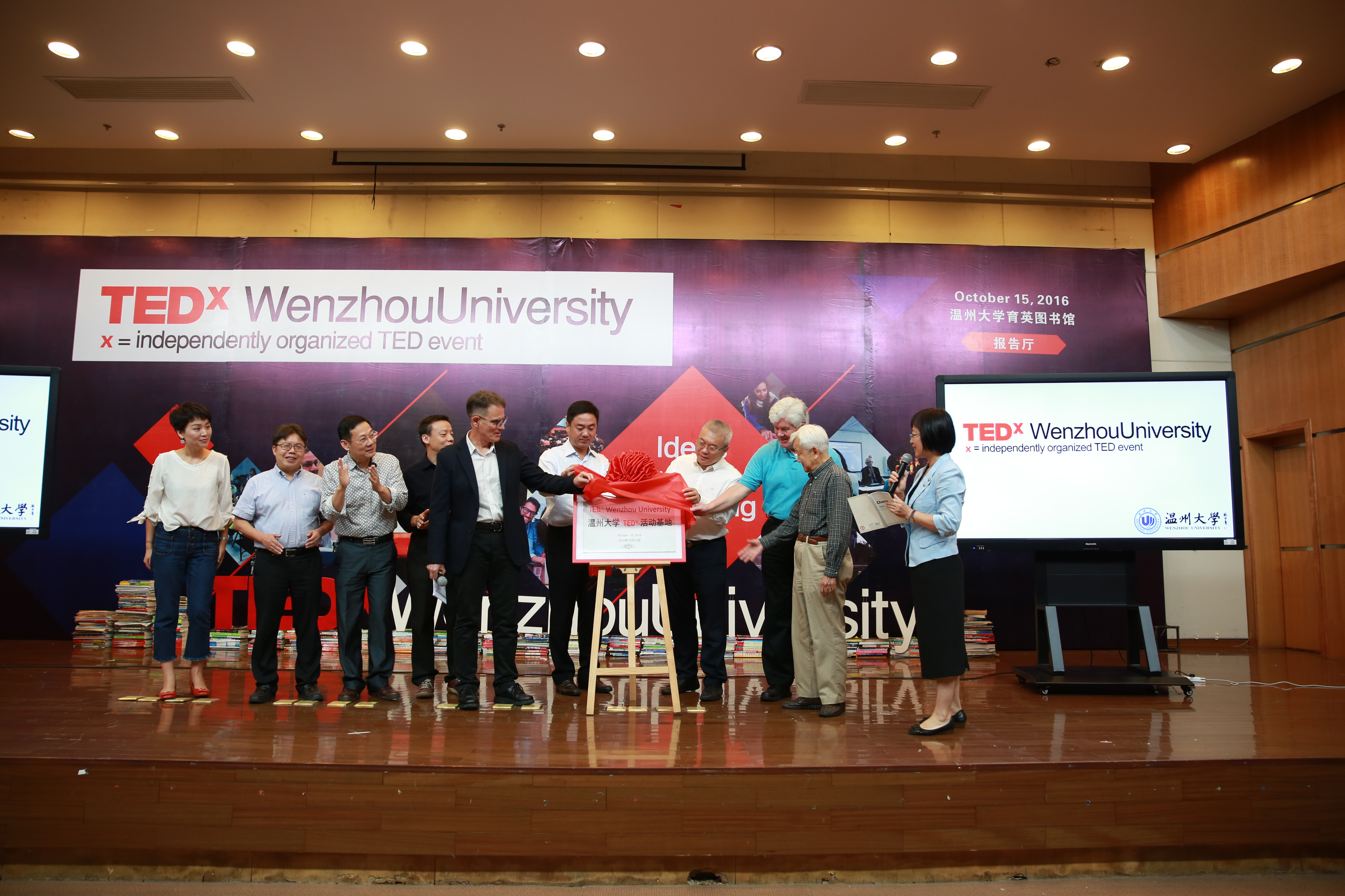 2016年10月15日上午9点,温州首个TEDx活动基地成立仪式暨学生首场TED演讲在温州大学图书馆报告厅顺利举行。温州肯恩大学党委书记、我校党委副书记王北铰,温州大学副校长钱强,温州肯恩大学副校长Philip Connelly等领导出席活动,我院院长周宏明、副书记李密,以及我院4名演讲学生参加了本次活动。