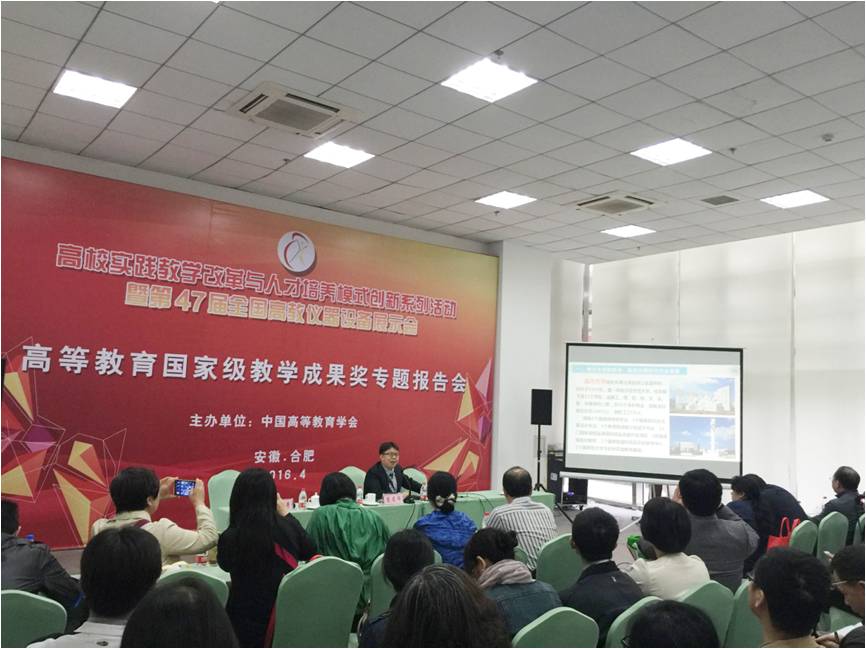 2016年4月26日至29日,由中国高等教育学会主办的高校实践教学改革与人才培养模式创新系列活动暨第47届全国高教仪器设备展示会在安徽合肥召开。来自教育部和各省市教育行政部门相关领导、全国高等学校院系领导、学科负责人等150余人参加了本次系列活动之高等教育国家级成果奖专题汇报会。我校黄色网址 周宏明院长受邀代表温州大学在会上作题为“面向中小企业的地方本科高校应用型人才培养探索与实践”的报告。