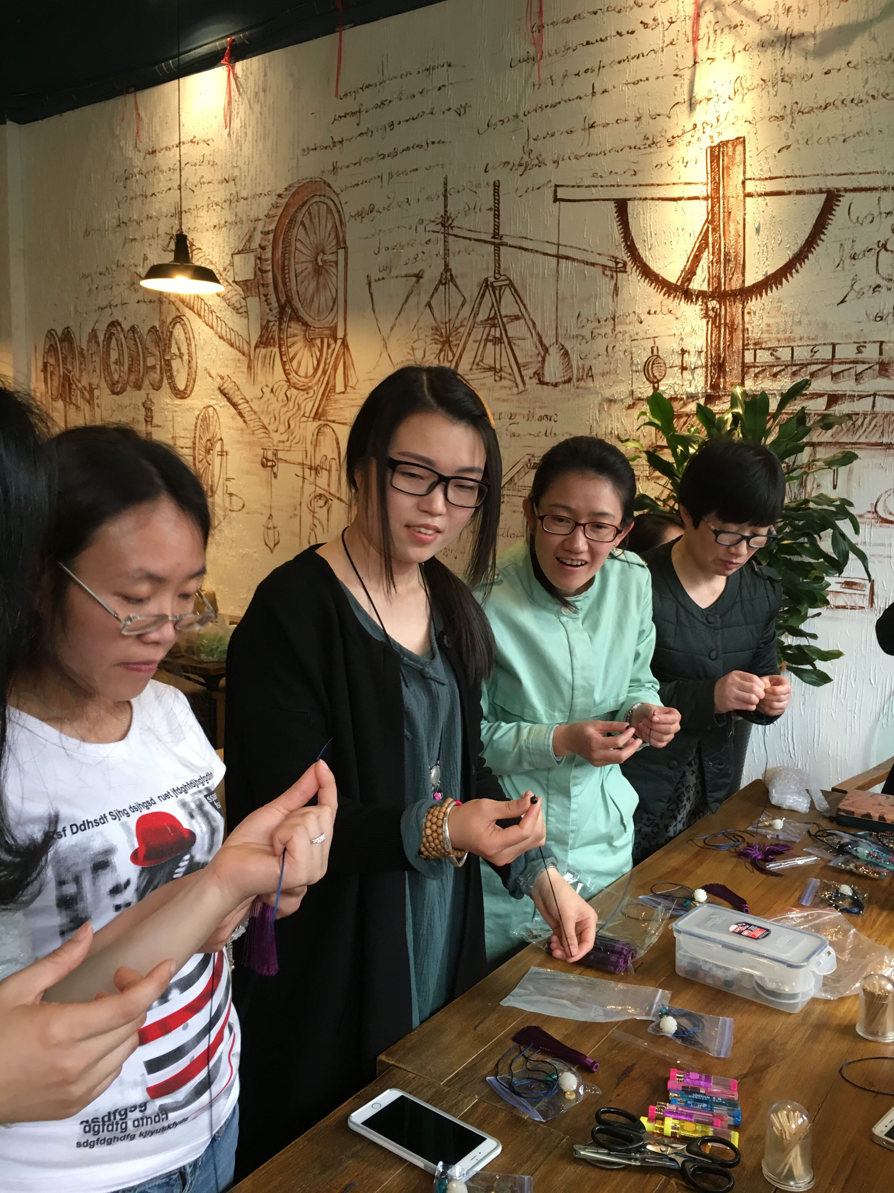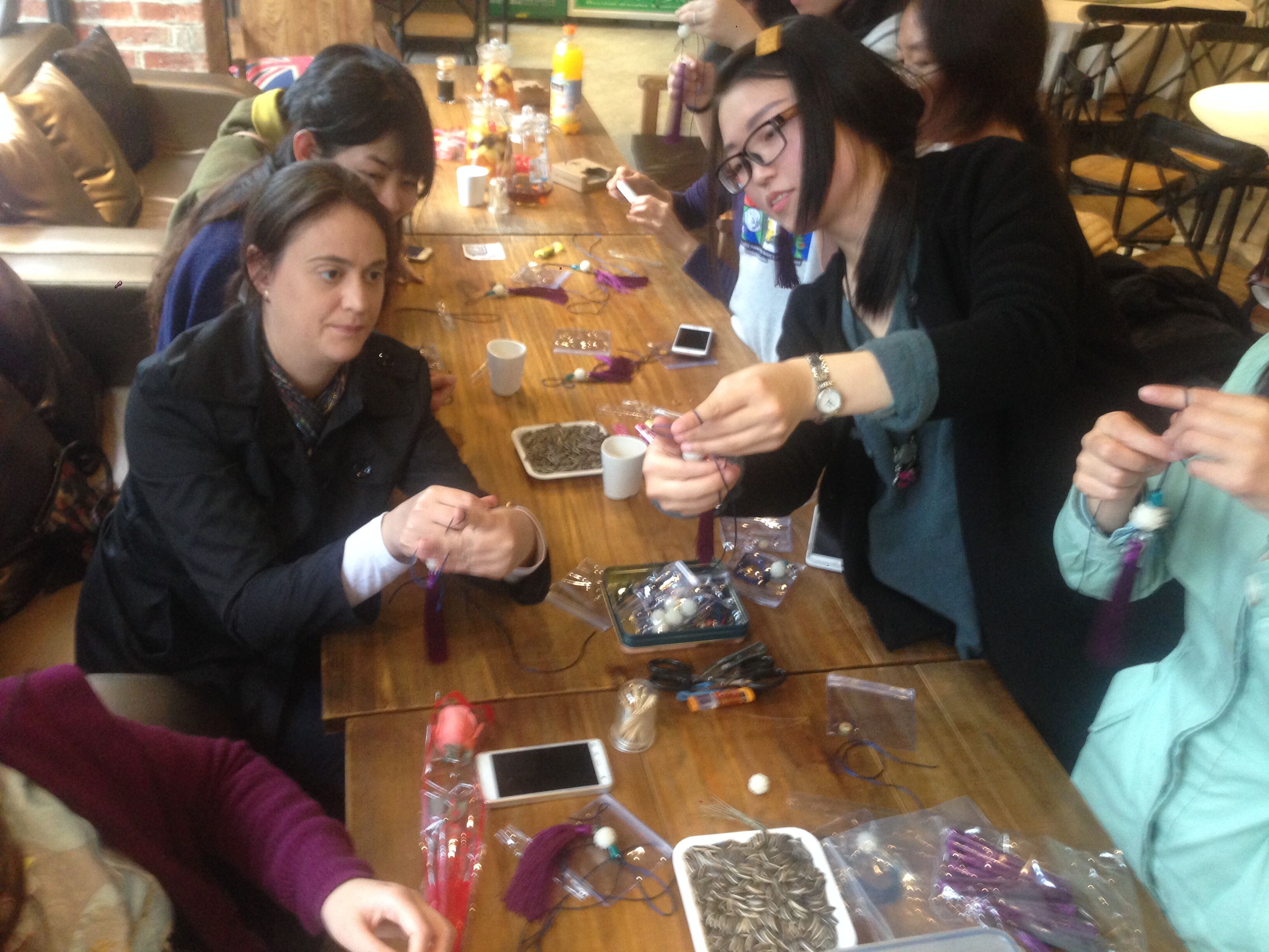 阳春三月,春风送暖,为了庆祝第106个国际“三八”妇女节,丰富我院女教工的业余文化活动,3月8日,学院工会组织全院女教工和女外教开展了一场别开生面的编绳串珠DIY活动。在专业老师的指导下,女教工们手下生花,平结、纽扣结、金刚结……将各种漂亮的白水晶、紫水晶和白玉菩提等珠子窜成美丽的手绳、项链和包挂等饰品。大家感觉到满满的成就感,纷纷都说又get了一项新技能。