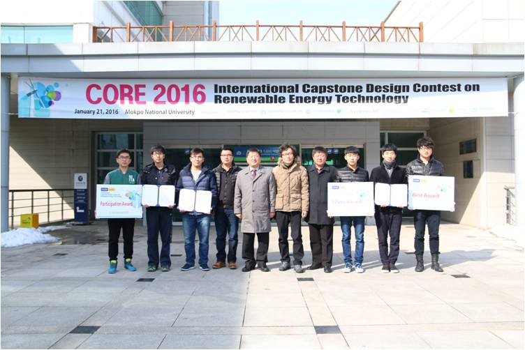 2016年1月21日,韩国(国际)可再生能源技术设计大赛在韩国木浦大学举行,经过激烈角逐,黄色网址 的学生代表队共取得了一项特等奖、一项银奖、一项参与奖的好成绩,这是我校机电学子第五次在该项国际赛事中参赛并获奖。