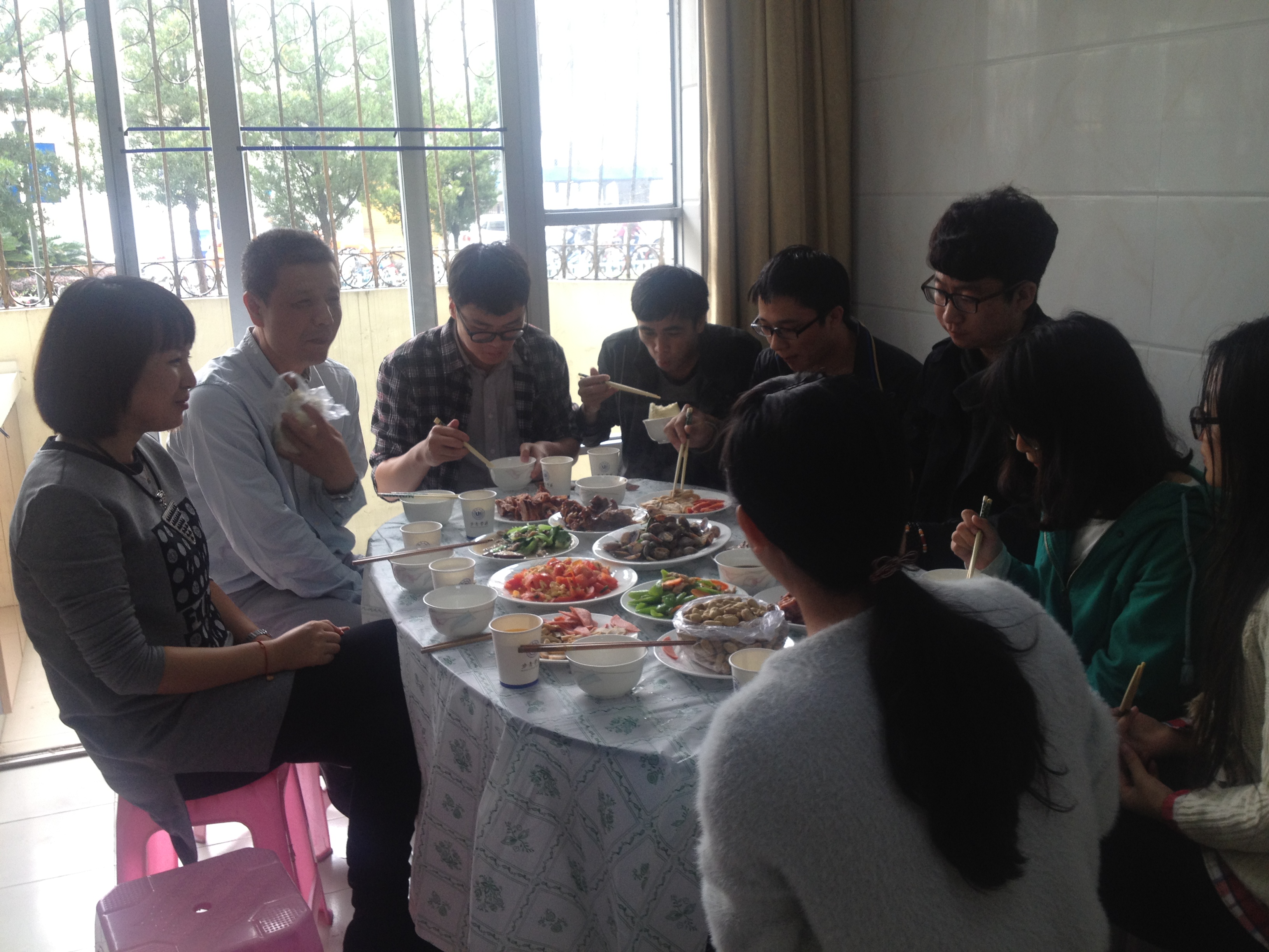 6号上午,李密副书记与学生科辅导员孙双、林梅早早准备好了各类菜品。10:30,三人就在步青小厨忙活开来,择菜、洗菜、切菜,淘米、蒸饭、煎炒,样样毫不含糊。周荣书记则贴心的带来了水果。学生们先后到齐,也加入了忙活着的厨师队伍。师生合力,终于,一大桌美味引得路过的同学直呼“好香好香”!老师们与学生边吃边聊,周书记关切询问大家来自什么地方,饮食生活是否习惯;李密副书记也关心同学们目前存在的困难,希望同学们能够克服困难,取得进步。午餐在轻松的氛围中进行,同学们深深感受到了来自学院和老师的关心,由最初的拘束到慢慢打开了话匣子,小厨里不时传出阵阵欢笑声。
