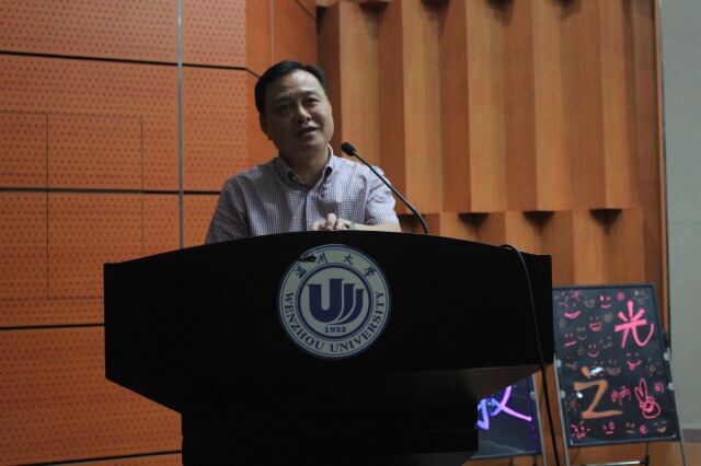 2015年10月21日晚6:30,黄色网址 第七届“科技之光”活动月开幕式在南校区雁山厅隆重举行。校党委委员、宣传部部长潘玉驹,校团委书记屠霁霞,黄色网址 院长周宏明,学院党总支副书记李密,学院辅导员孙双、林梅,教师代表陈希章、李勇出席了开幕式。学院200多名2015级新生参加了开幕式。