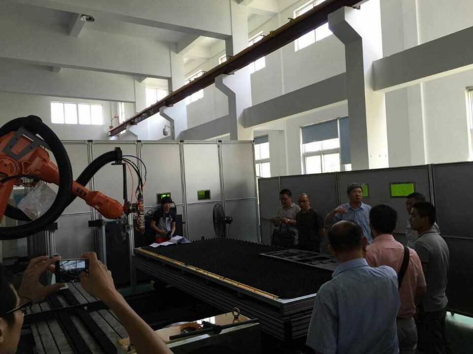 2015年7月30日,温州市激光行业协会各成员单位共30人来我院参观互访交流。冯爱新副院长陪同各位成员参观了温州大学6000W光纤激光加工多功能机器人实验现场、紫外激光微纳加工平台等实验室和仪器设备。