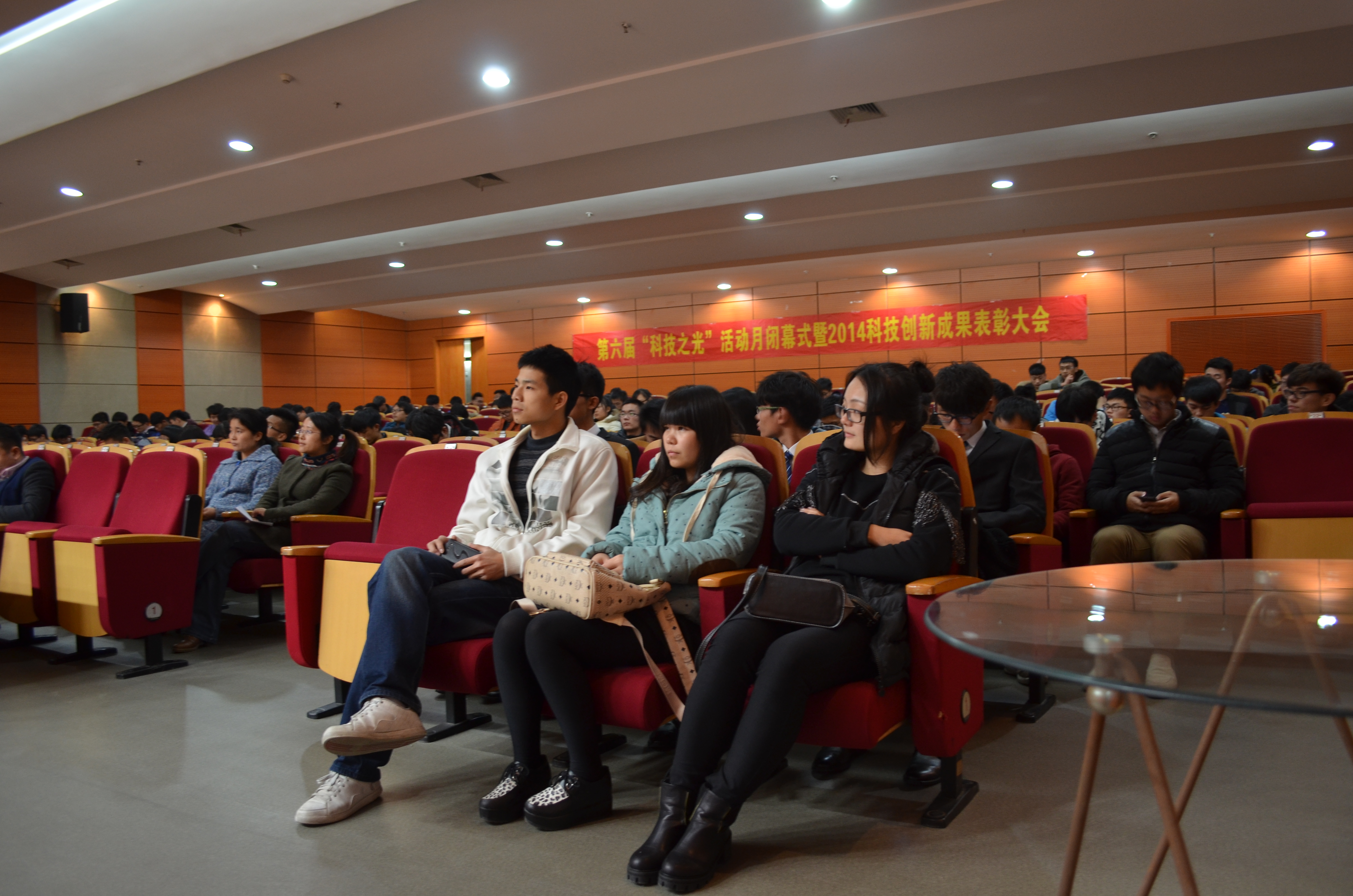 12月17日晚六点半,机电学院第六届“科技之光”活动月闭幕式暨2014科技创新成果表彰大会在南校雁山厅举行。出席本次活动的领导有黄色网址 党总支书记方乐平、副院长周宏明,机电学院各专业教师代表及广大机电学子参加了闭幕式。