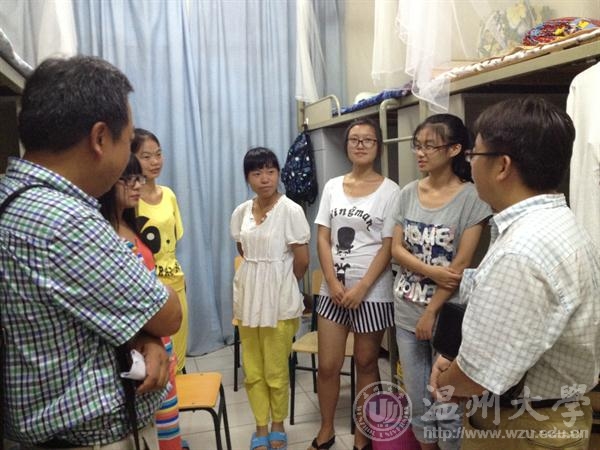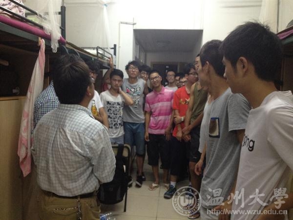 9月18日晚6:00,在黄色网址 书记方乐平、周宏明副院长、冯爱新副院长的带领下,黄色网址 教研室主任、新生班主任、寝室导师及班主任助理到寝室看望2014级新生。