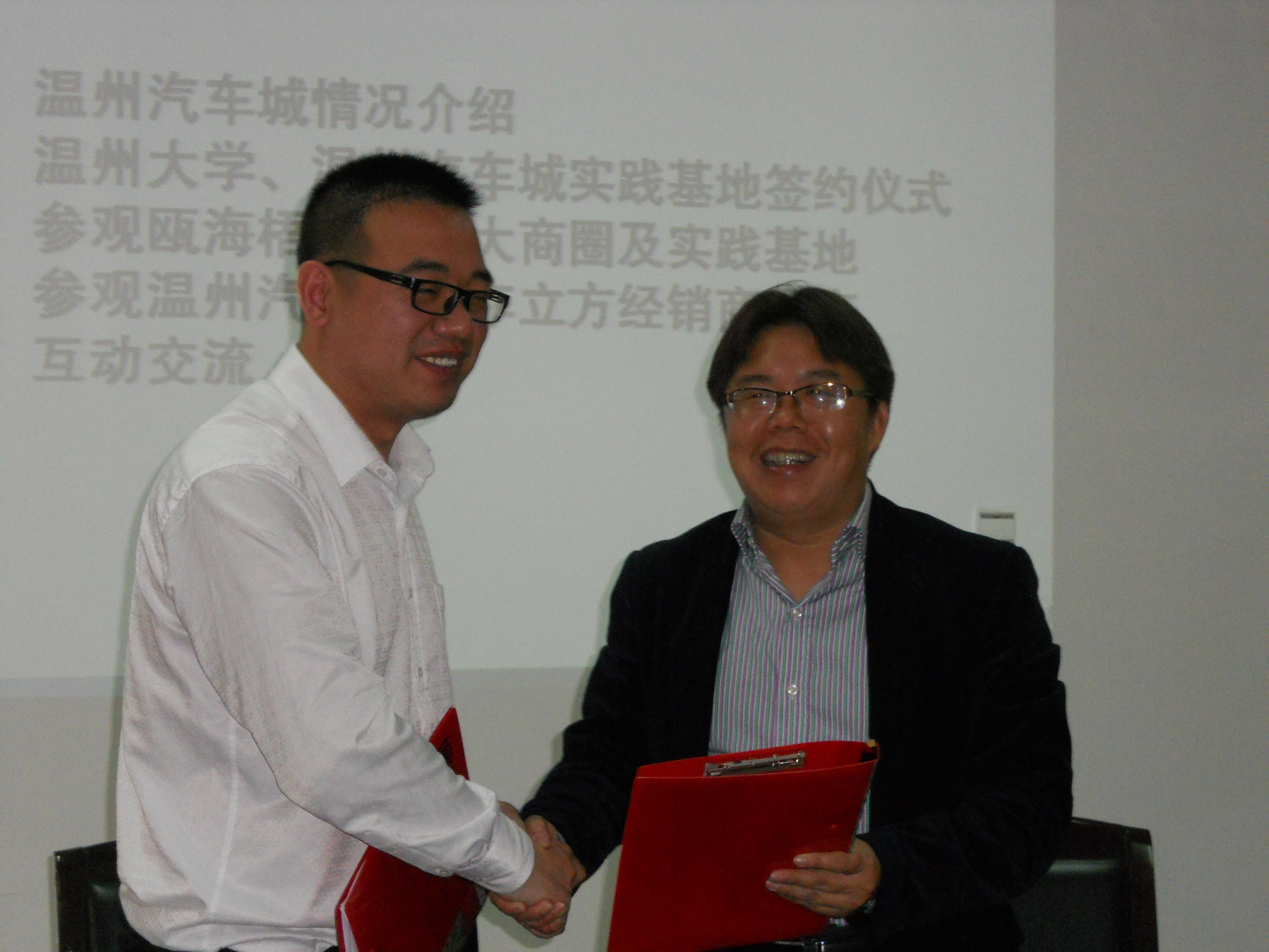 启动仪式上,学院常务副院长周宏明介绍了学院的汽车服务工程专业建设和人才培养情况;汽车城总经理赵火生介绍了汽车城的发展历史,人才需求等。双方还就共建实践教育基地、产学研合作,项目交流,学生实践实习等方面进行了深入的交流。随后,合作双方正式签订了校外实践教育基地共建协议书。