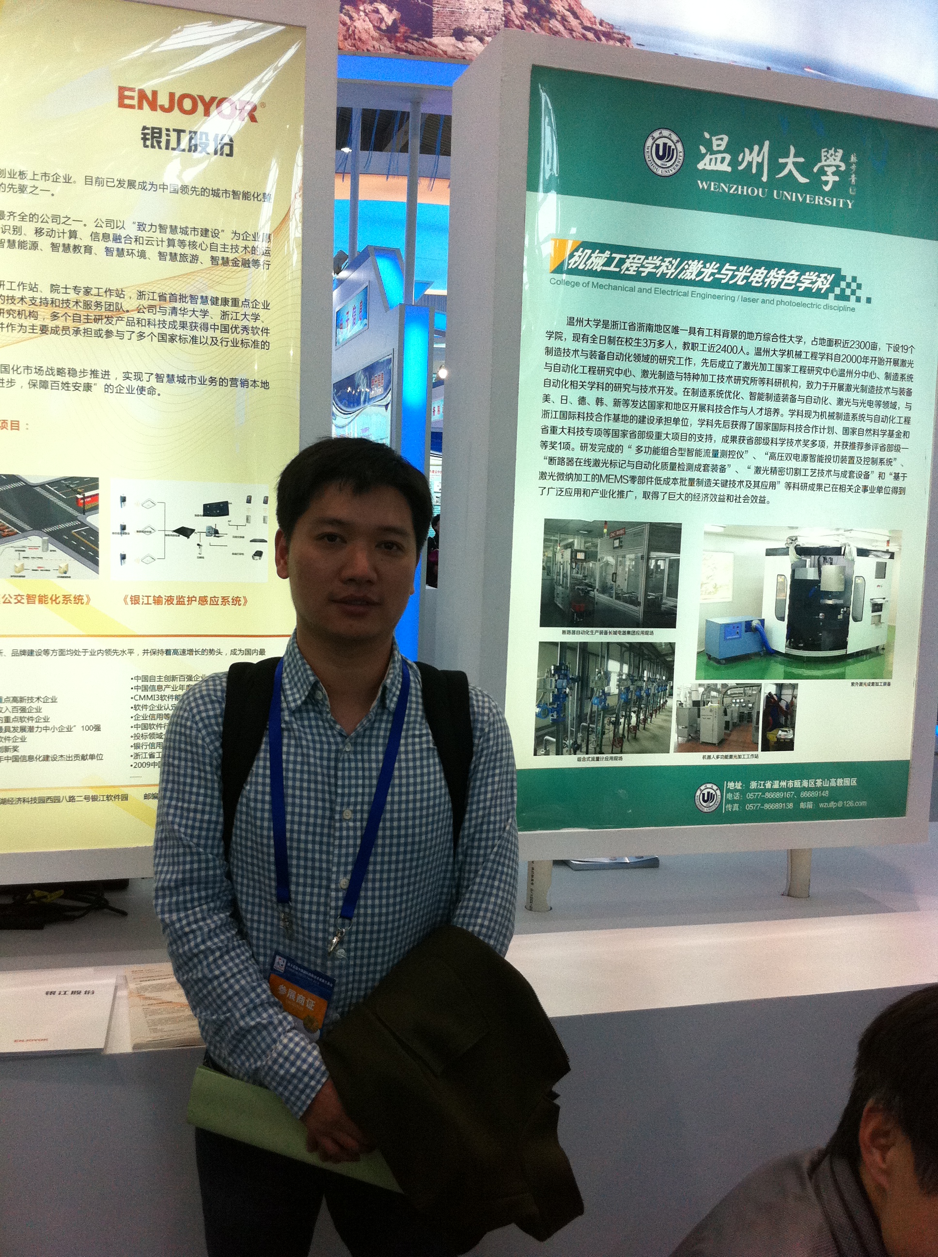 浙江省科技厅、省商务厅、省发改委、省经信委联合精心组织了省内各个高等院校、科研院所、高新技术企业积极参展,我院机械工程学科/激光与光电特色学科代表温州大学参展。温州大学机械工程学科自2000年开始开展激光制造技术领域的研究工作,先后成立了激光加工国家工程研究中心温州分中心、制造系统与自动化工程研究中心、激光制造与特种加工技术研究所等科研机构,致力于开展激光制造技术与装备自动化相关科学的研究与技术开发,学科先后获得了国家国际科技合作计划、国家自然科学基金和省重大科技专项等国家省部级重大项目的支持,成果获省部级科学技术奖多项,并获推荐参评省部级一等奖1项。本次参照的研究成果“ 多功能组合型智能流量测控仪”、“高压双电源智能投切装置及控制系统”、“断路器在线激光标记与自动化质量检测成套装备”、“ 激光精密切割工艺技术与成套设备”和“基于激光微纳加工的MEMS零部件低成本批量制造关键技术及其应用”等科研成果已在相关企事业单位得到了广泛应用和产业化推广,取得了巨大的经济效益和社会效益。