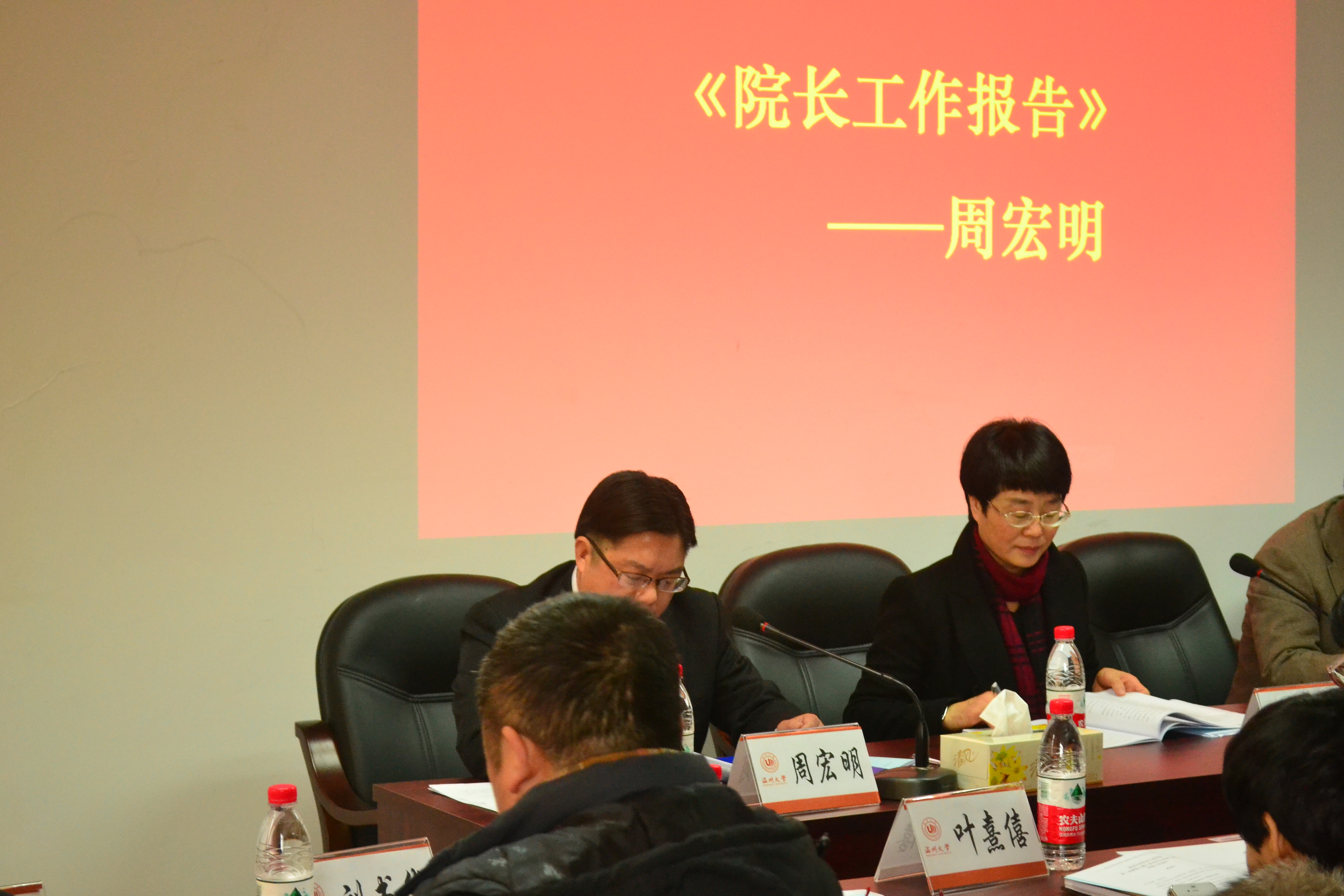 常务副院长周宏明代表学院领导班子向大会作学院工作报告,对过去一年学院在专业建设与人才培养、学科与科研、人才引进与师资队伍建设、学院党建、学院财务等五个方面进行了全面的回顾与总结,深刻分析了学院目前存在的机遇与挑战,并从强化师资队伍建设、加大教学投入、加强学科与科研、加强党建与思想政治教育等几个方面对下一阶段学院的工作进行了总体规划。周宏明副院长还就《黄色网址 岗位津贴分配办法》(暂行)及过去一年学院财务的总体运行情况向大会作了说明。